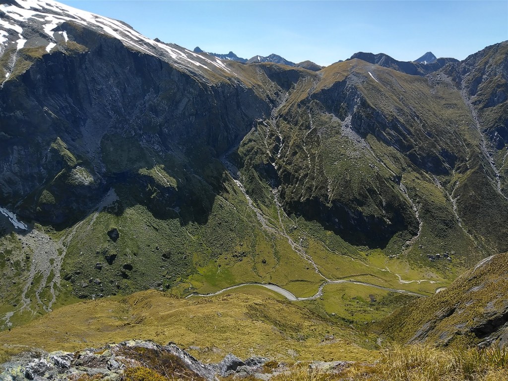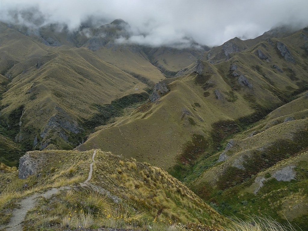 Tři dny mezi Arrowtownem a Wanakou nebyly nejpříznivější, co se počasí týče, ale trek to byl nádherný a náročný, po pralese Fjordlandu ten největší kontrast, jaký jste mohli zažít. Skoro žádný strom, zato holé strmé hřebeny skal, jeden za druhým, kam oko dohlédne, a stezka strmě nahoru a dolů proměňující pěšího poutníka v horskou kozu jaké se tu pasou, zdivočelé pozůstatky dávného osídlení.