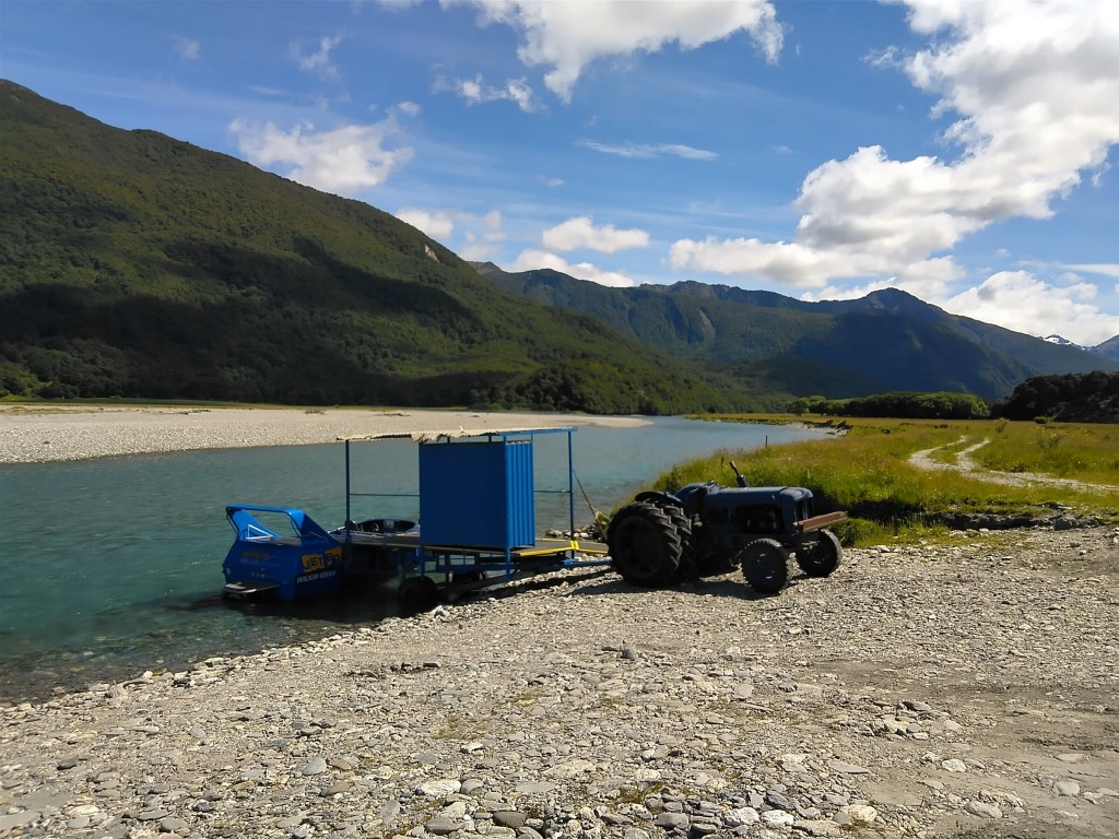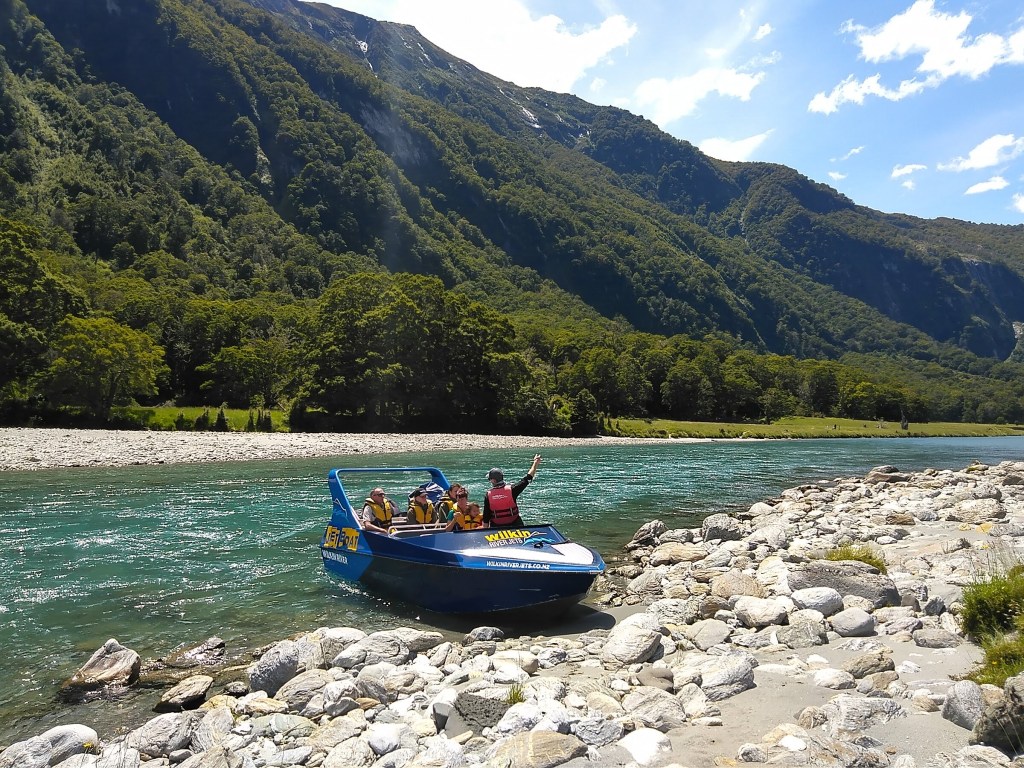 Vánoce pro mě začaly už na Štědrý den ráno, nadělila jsem si v kavárně, u které jsem kempovala, venison pie (venisoni aka jeleni pobíhali v ohradě hned za cestou), mrkvový dortík a dva flat whity, protože jsem věděla, že týden zas uvidím jen klasiku: čínské nudle, kaše, tortilly a sýr a podobné věci. Taky jsem si nadělila výlet tryskočlunem, protože řeky jsou stále dost vysoko a potřebovala jsem se dostat přes Makaroru a Wilkin river na výchozí místo plánovaného treku. To nádherné počasí jako bonus zajistil jen a jen Ježíšek – jó, musela jsem být móc hodná.