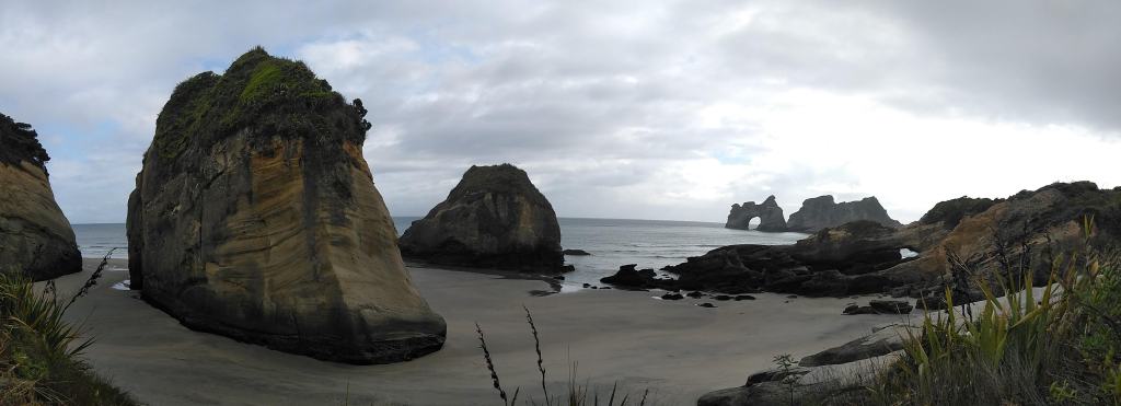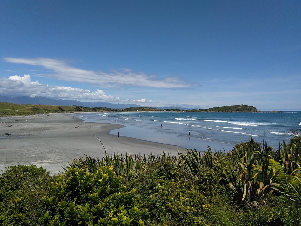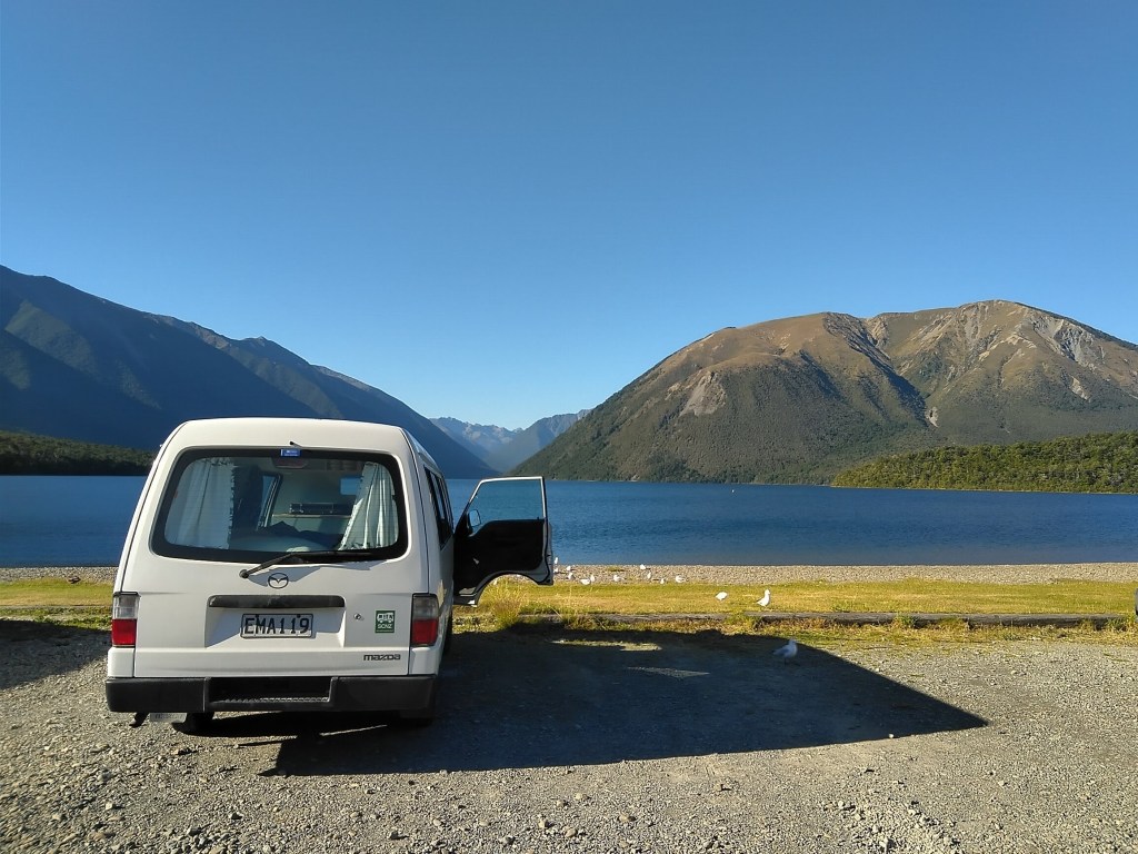 V St. Arnaud u jezera Rotoiti jsem měla sraz s Mirou a jeho dodávkou Emou. Následující dva týdny nás cesta vedla do nejzapadlejších míst severního cípu „Jižáku“, užívali jsme si výletů, procházek a zajížděk, ochutnávali místní dobroty (víno, pivo, jehněčí hnáty, zmrzky, kiwi, třešně, páje…) koupali se, kde se dalo, vylezli, kam to šlo, vlezli do kdejaké díry a škvíry a dostali se až tam, kam už to dál nešlo. Celou tu dobu jsme byli v přízni místních maorských bohů, pač jinak si to krásné počasí (obzvláště na západním pobřeží pověstném nejhoršími bouřemi, lijáky a vlnobitím) nedokážu vysvětlit.