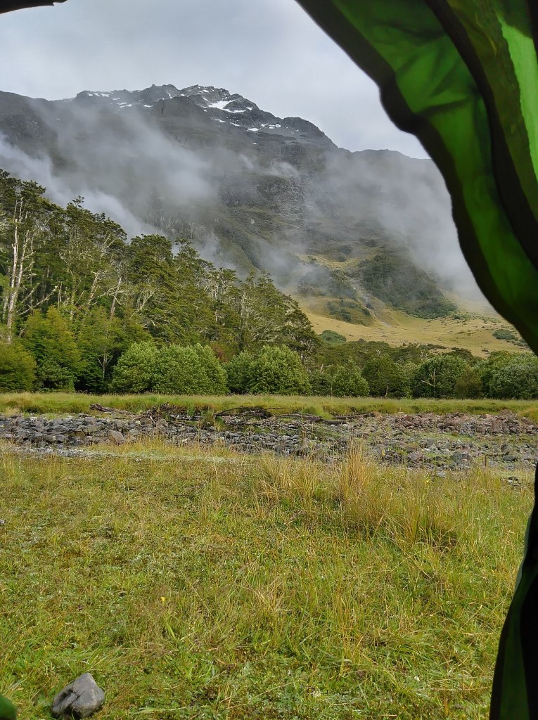 Ráno po dešti, modlení, ať se rozplynou… ať sníh roztaje, než dorazím nahoru do Waiau pass… všechno se splnilo!!!