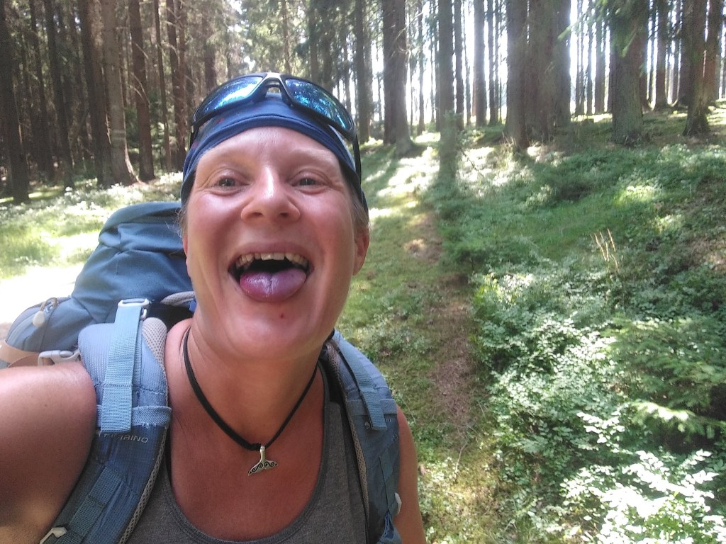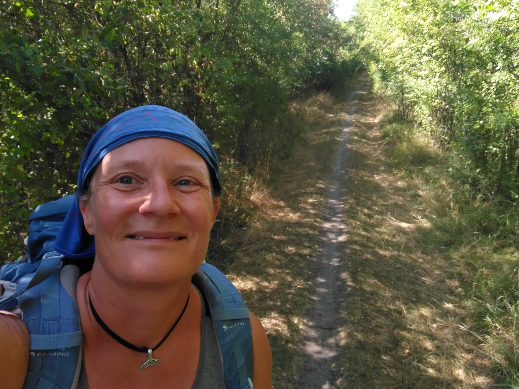 Podle značek to vypadá, že jsem se právě napojila na Svatojakubskou cestu – akorát že jdu zas v protisměru, jak se mi to občas na těch mých caminech stává; holt jsem rebel! Nebo jak by to podali jiní: já prostě vždycky musím mít něco extra.