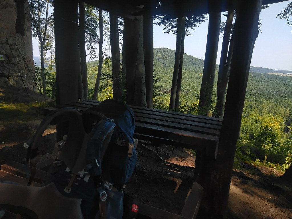 Byla jsem tu už jednou, před více než 20 lety. Nepamatuju si z toho nic, jen že bylo neskutečné vedro. Dnes je vedro až příliš skutečné. Ale řeknu vám, že bych to musela vidět třikrát… když to srovnám s tím výletem na Kokořín… co je tady? Prd! Všech 5 laviček bez opěrátka a stínku zdemolovaných, není kde unavené tělo složit, rotunda zavřená, obsypaná šnuptychly, chata se svým nevábným okolím připomínajícím smetiště či skladiště festivalového bordelu včetně podezřelé toitoiky podpírající se navzájem s popelnicí zavírá už v pět, kdy konečně začíná přestávat to šílené vedro a troufnu si vzhůru na pokraji smrti hladem (spíš žízní), mrazem (no to jsem si trochu zapřeháněla) a vysílením (to je pravda, už mám dnes v nohách hodně přes třicet).