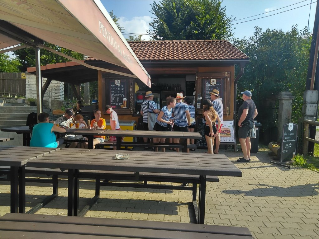 Zachraňuju si život v otevřené hospodě v Kostelní Lhotě. Čepujou Postřižinské a Radegast, což je trochu dylen, ale volím místní – Radka si můžu dát kdykoli doma. Na tabuli s nabídkou mají sice asi 3 položky, ale všechny jsou vzorně přeloženy do angličtiny, což mě naprosto dostává. Vedlejší stůl plný vyšňořených babek obklopených pivy a víny zahajuje konverzaci typickým „…sama?….nebojíte?…unesete?…“, ale posléze se dovím i nějaké místní informace a dokonce je mi nabídnuta i borůvková buchta. Babky byly v kostele na pouť, ale protože je celá hlavní ulice rozkopaná (Kostelní Lhota se skládá pouze z této jedné ulice), žádné pouťové veselí typu kolotoče, stánky, střelnice se nekoná. Obec už několikrát vyhrála cenu o nejlepší vesničku střediskovou, čemuž je teď v tomto stavu trochu těžko uvěřit, ale mají to na cedulích, tak to bude pravda. Lhot je tu tolik, že se dokonce pořádají celonárodní sjezdy Lhot, ta nejbližší měla být tady, ale není, bo rozkopané, rozkopané.