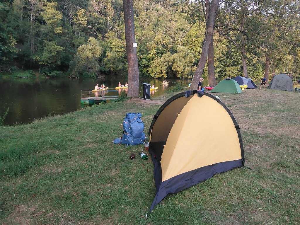 Povzbuzena koupelí v Sázavě pod hradem a dobře vychlazenými Svijany tamtéž („Vítá vás zahrádka bez obsluhy“) jsem se ještě přehnala přes kopec do vodáckého kempu v Ratajích. Alkohol způsobil jistou nejistotu v mých pohybech při přelézání padlých kmenů přes stezku, a tak jsem do kempu dorazila podřená jak Krvavý dědek (ale můžu já za to, že birela neměli?). Kemp v Ratajích se vyznačuje veselou vodáckou atmosférou, absolutním minimem hygienických zařízení (žeton na sprchu s horkou vodou bez možnosti regulace jsem odmítla) a nekonečnou frontou v místním bufetu. Než jsem ji vystála, měla jsem zážitků na celou sezónu. Po dalších dvou pivech a koupeli v Sázavě, kde jsem plavala spolu s mrtvým kaprem, jsem se cítila dostatečně posilněna, abych přečkala očekávanou bezesnou noc. Ale kupodivu všichni pařiči se před jedenáctou začali postupně utišovat a kromě příjezdu party Ukrajinců ve dvou autech, kteří se jali velmi hlučně v 2:30 a. m. stavět stany a družně konverzovat, a následného chrápání ze všech okolních stanů, byla tato noc klidná a prosta jakéhokoli vzrušení.