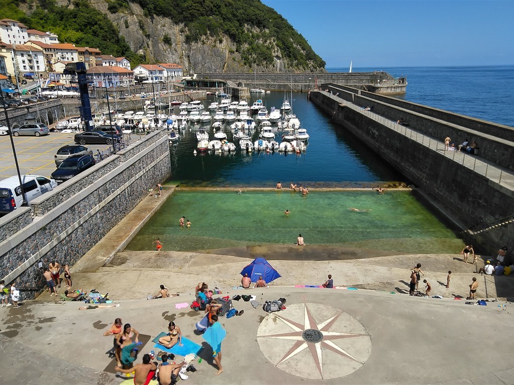 Nejen v Elantxobe najdete podobné chráněné bazénky pro prázdninové skotačení.