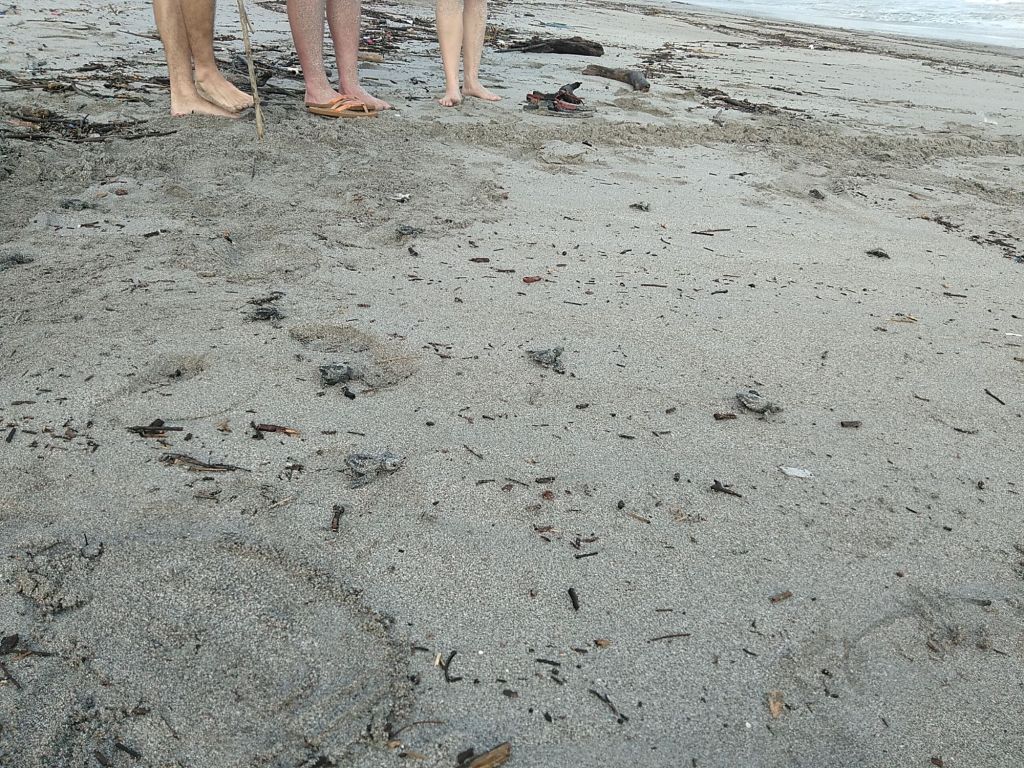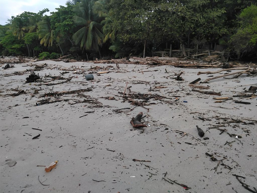 Hned při první procházce po pláži potkám Němce, Amíky, Frantíky a Poláky. Všichni jsou tu zalezlí v ubytováních nenápadně schovaných v křoví, ale jsou tu. Zjišťuju téměř katastrofální stav pláže (i všech okolo): hromady naplaveného dřeva a plastového bordelu z právě končícího období dešťů. Majitel mého ubytka (nepředstavil se, říkejme mu tedy třeba Pedro) mi později vysvětlí, že ten svinčík pochází z řeky Tárcoles na protější pevnině, která během své cesty Centrálním údolím vymete pár slumů nedaleko San José a všecko to pak teče do nicoyského zálivu a příboj to sem chrstne rovnou na zápraží jako nemístný předvánoční dáreček.