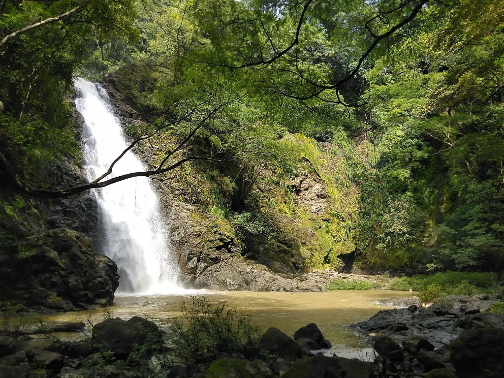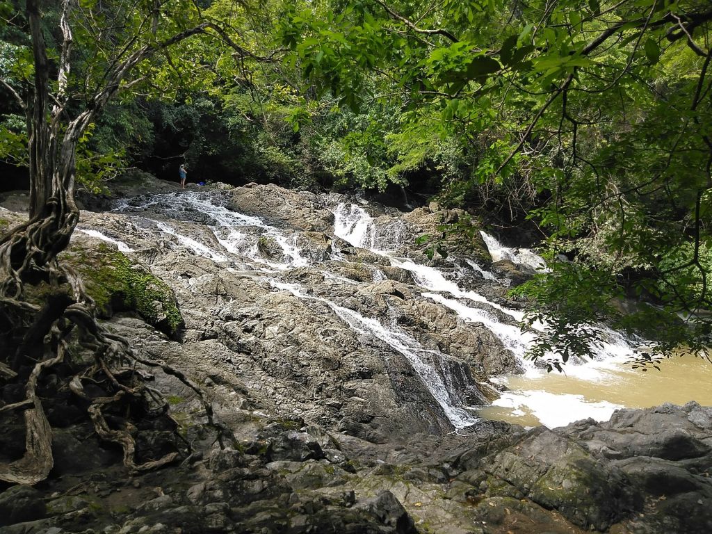 Po cestě nepotkám ani nohu (že bych tu po osmé byla moc brzo? Nebo lidi mají strach kvůli dešťům?), vodopády mám úplně pro sebe. Pak přiletí morfo a v tůňce se mihne modré klepítko sladkovodního kraba. Větší catarata je dost vydatná a kalná, ale z protisvahu se line jiná a čistá voda, kde se řádně vymáchám. Pak se roklí z kopce začne řítit skupina Amíků s místním průvodcem – na tu kilometrovou túru do džungle si ho evidentně najali, tváří se velmi důležitě. Jen projdou kolem, nikdo nejde do vody!