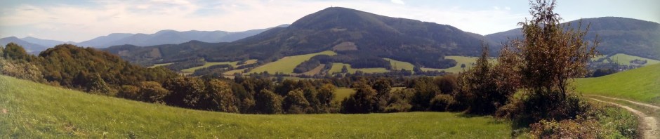 sever: výrazná bílá věž příborského kostela, mošnovské letiště a dál vzadu haldy a komíny lemující obzor na ostravské straně – v pořádku;