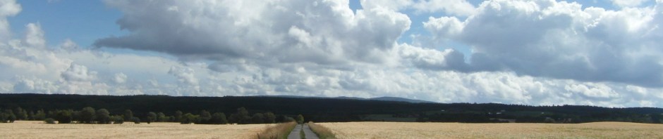 Větřík točí teplotu příjemně kol dvacítky a posunuje stínítka po obloze. A jaká! Dneska nevím, kam se dřív dívat, jestli na zem, nebo na nebe. Vstoupila jsem krajináři do obrazu. Tady přijde k užitku celá paleta, spousta zlatožluté obilné, azurová s bílou a ještě bělejší, prsknout do toho pár kaněk skandinávské červené na domečky a doladit idylku chumáčky ovčí vlny a mrskajícími se ocasy koníků na pastvě. Támhle je brůna, tu zas u plotu černý divoký hřebec větří, jestli mi netrčí z batohu kus mrkve.