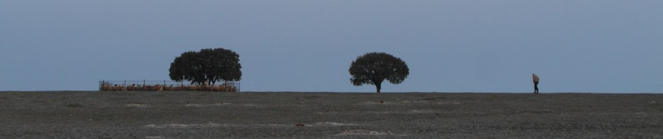 Od Méridy už jdu absolutně a bezpečně sama. S nikým se moc nebavím a i lidi fotím většinou z dálky, vůbec nebo rozmazaně. Děcka co si zabalené v červených závěsech hrají před farmou uprostřed vinic a olivových hájů na Tři krále. Barmanku z Rumunska, ztracenou tady ve vidlákově ještě větším než doma. Babky na špacíru při západu slunce v Nové Vsi. Itala z Urbina, dobrovolníka na faře v Salvatierra, jehož předek byl zaručeně saracénský pirát. Dědu co za svítání křupe v jinovatce vypustit ovce. Traktoristy. A to je všechno, víc jich není.