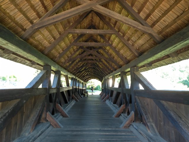 krytý barokní most v Černvíru (bryskně přeložen do němčiny jako Der schwarzer Strudel), Pernštejn v dálce na kopci (stejně zavřeno, dána přednost pivu pod kopcem). Po vyhrabání se do šíleného krpálu, který nevedl nikam, jsme ke svému nesmírnému úžasu potkali uprostřed toho ničeho hřiště s průlezkami a považovali za svou vlasteneckou povinnost si na nich patřičně zaskotačit. (Vlasteneckou já, Kumpán to považoval za svou povinnost cizineckou.)