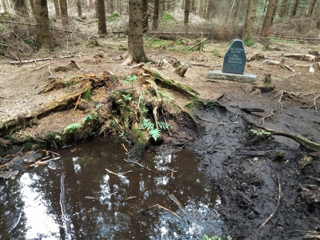 A jsem u pramene Svratky. Bohužel, sem asfaltka opravdu vede. I samotné místo je zklamáním. Jen rozšlapané bahno kolem špinavé tůňky a kolem popadané nebo pořezané uschlé smrčí. Jako už tolikrát, cesty vedoucí k cíli se ukázaly daleko krásnější než cíl sám. Prodlužuji si tedy bloudění zarostlými pěšinami, dokud toho nemám opravdu dost, a dopřávám si ten luxus počkat na vlak v zahrádce hospody ve Veselíčku, kde je k mání babička vrchní, orchestrión, pivo a jahodový mrož.