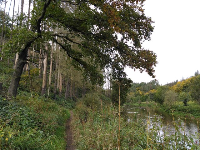 Ráno o samotě podél vody je až do nedaleké Ledče nad Sázavou kochací. Řeka jen kousek za Stvořidly předstírá línou smrt, je jako černé zrcadlo pro všechny barvy sypajícího se listí.
