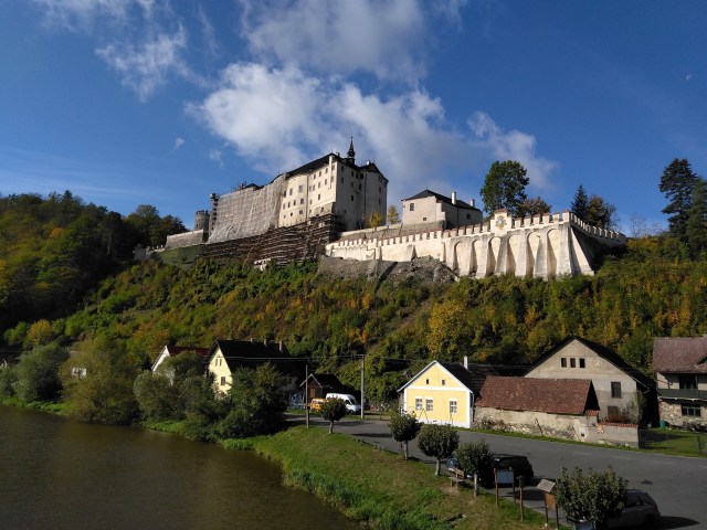 Hrad v Ledči je impozantní, i když poněkud omšelý. Pro zahřátí si vyběhnu na vyhlídku na Šeptouchovskou skálu. Omšele odsud působí i celá obec s obligátními paneláky na okolních kopcích navrženými tak, aby účinně zastiňovaly hradní siluetu i jakékoli náznaky historického centra. Zahřátí číslo dvě si dávám ještě v pekárně u buchet a kafe (se všemi rouškovacími prostocviky). Nezhrdnu otevřenými podniky jakéhokoli druhu, protože po cestě není moc kde doplňovat zásoby. Většinou tak akorát jednou denně nebo obden narazím na oázu, kde se dá pořídit něco teplého, a okamžitě ji využívám, ať jsem už předtím jedla či nikoli.